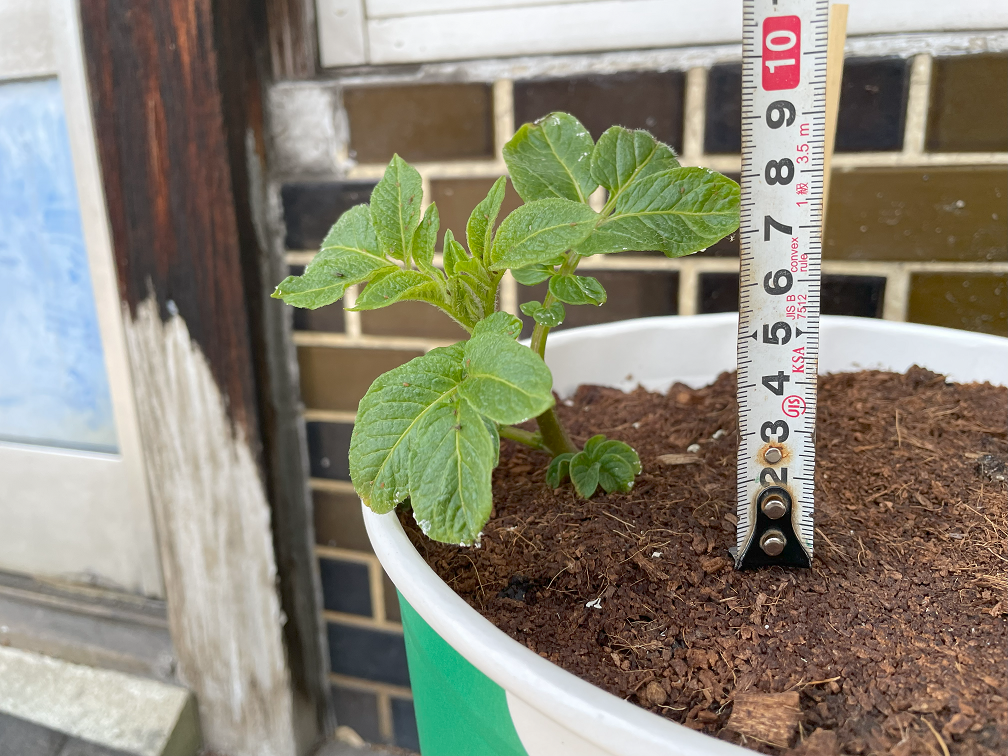 5月に入っての生育 4月末に芽を出したカルビーの種イモ「ぽろしり」は5月に入り気… -