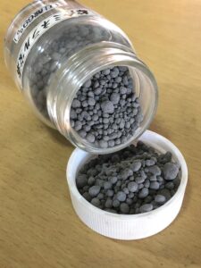 また、綜合ミネラル宝素には粒状品もあり、これは微粉末化された鉱石を糖蜜で固めたもので、使用時の扱いやすさを考慮した製品です。