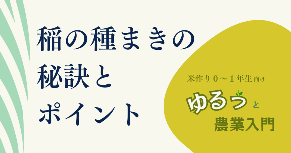 初めての稲作にチャレンジする皆さん、ゆるっと農業入門をご覧いただきありがとう...